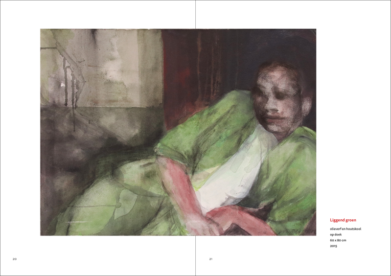 Van sommige werken spat de energie af, zoals het schilderij Meisje van Valencia, waarop een jonge Spaanse vrouw met priemende ogen langs haar omvangrijke sluier naar ons kijkt. Ik hoor later van Monique dat dit werk in Spanje is gemaakt, en dat het land haar inspireerde tot ander kleurgebruik. Op veel andere werken zijn de kleuren inderdaad ingetogener en lijken de figuren soms meer in zichzelf gekeerd. Monique vertelt me hoe lang ze weleens doet over één werk voordat ze de essentie van wat ze wil overbrengen heeft vastgelegd. Onder die ene blik die wij zien, bevinden zich misschien wel talloze andere blikken, met andere emoties. Ik vraag me af of dat hetgeen is wat me intrigeert aan haar werk: de wetenschap dat er zoveel meer emotie onder de bovenlaag schuilgaat.